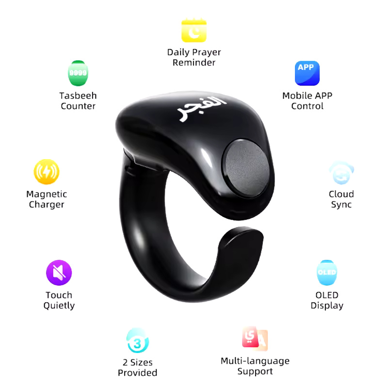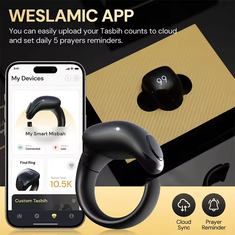 Weslamic Smart Tasbeeh Zikr Ring – Digital Tally Counter for Islamic Praise & Prayer | Waterproof, Magnetic Charging, and Convenient Reminder